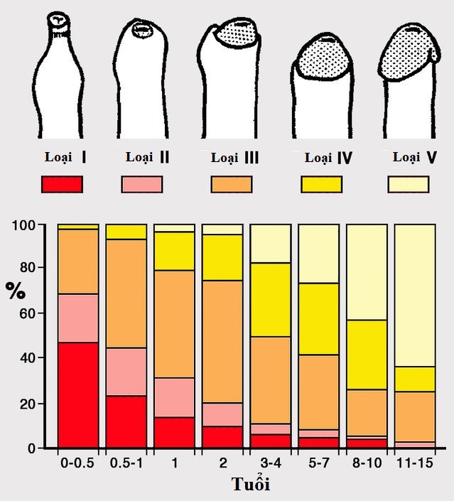 | Không mở được bao quy đầu (loại 1) | 17% | 10% | 1% |
